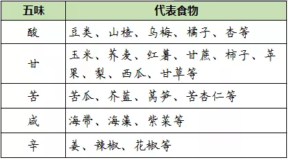 表 五味代表食物