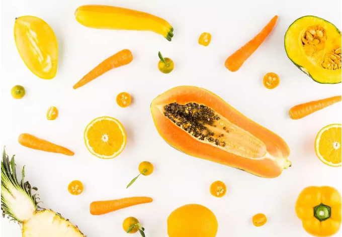 南瓜、胡蘿卜、芒果、木瓜等黃色果蔬