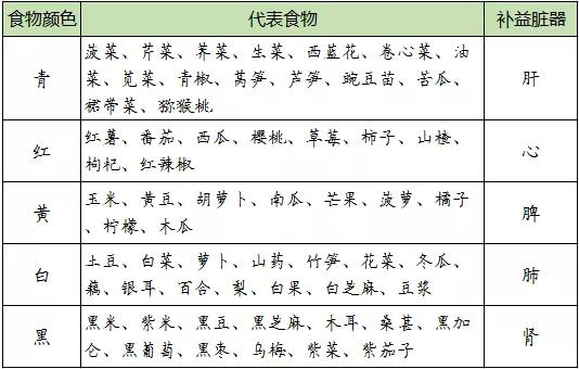 素食主義者的五色食物補(bǔ)益臟器對(duì)照表