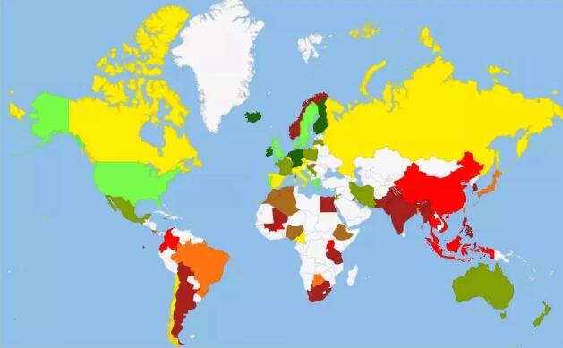 國際骨質(zhì)疏松基金會根據(jù) 2017 年的相關(guān)研究,制作了《世界補(bǔ)鈣地圖》,標(biāo)出了各個國家和地區(qū)的人們每天通過食物攝入的鈣量。