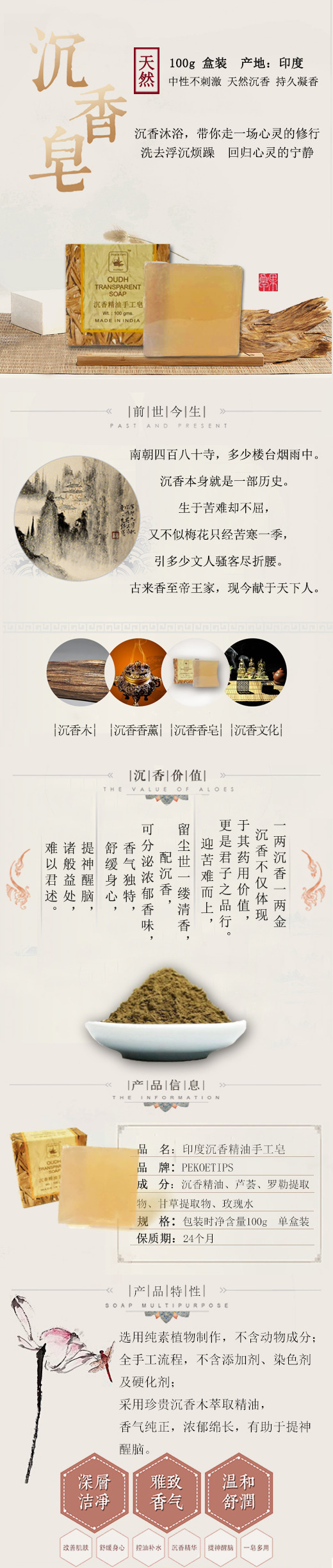 天然沉香皂,原產(chǎn)印度,中性不刺激,天然沉香,持久凝香!選用純素植物制作,不含動(dòng)物成分;全手工流程,不含添加劑、染色劑及硬化劑;采用珍貴沉香木萃取精油,香氣純正,濃郁綿長(zhǎng),有助于提神醒腦!