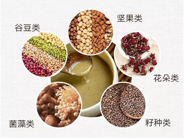 君:由多種糧谷和豆類給成,含有豐富的蛋白質(zhì)與碳水化合物;