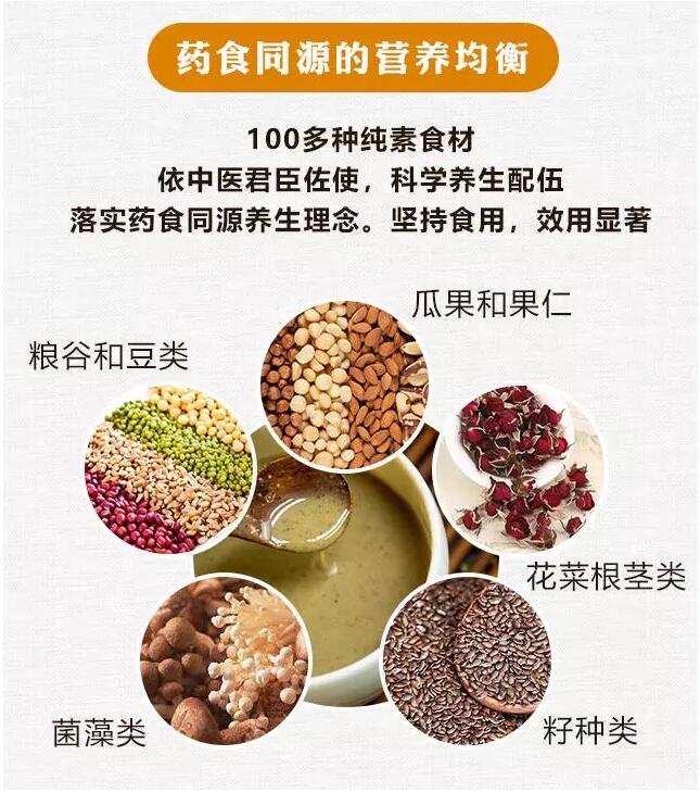 中醫(yī)組方,百余種純素食材科學(xué)配伍,落實藥食同源的養(yǎng)生理念,補氣養(yǎng)血,排毒痛經(jīng)。